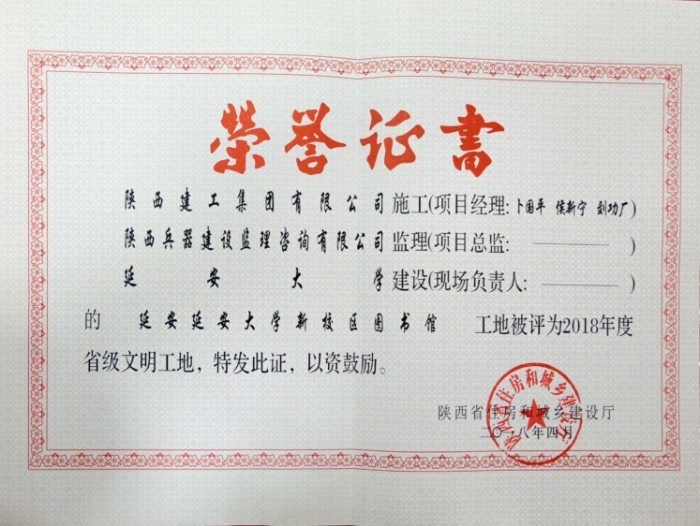 2018年度延安市建設工程質(zhì)量安全生產(chǎn)先進集體