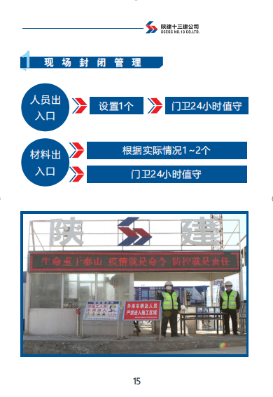 《手冊》包括陜建十三建公司復(fù)工準(zhǔn)備工作、復(fù)工前驗(yàn)收流程、辦公區(qū)管理、施工區(qū)管理、宿舍及餐廳管理、后勤保障、應(yīng)急管理七部分內(nèi)容。