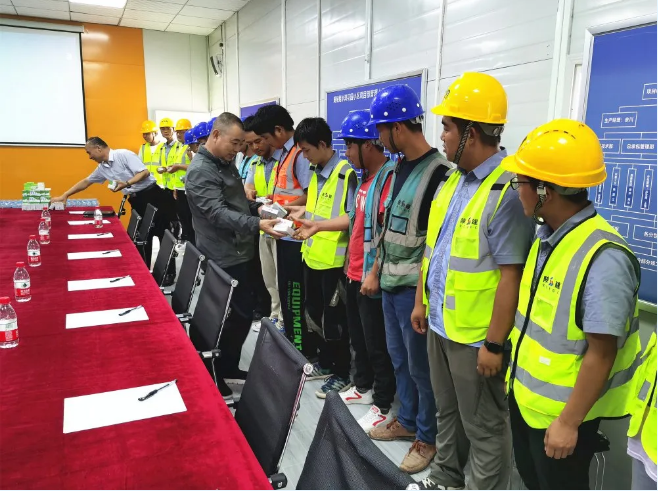 座談會上,集團黨委副書記楊興斌聽取了項目經(jīng)理關(guān)于項目建設(shè)進展的匯報,對項目前期建設(shè)給予充分肯定。他代表陜建集團向奮戰(zhàn)在項目一線的職工和工友們表示衷心感謝,并為大家發(fā)放了綠豆、冰糖、茶葉、藿香正氣水等防暑降溫用品。他叮囑項目負責人,必須將安全生產(chǎn)放在首位,在保障生產(chǎn)經(jīng)營工作有序開展的同時合理調(diào)配作息時間,做到勞逸結(jié)合,實現(xiàn)安全生產(chǎn)和防暑降溫工作兩不誤。