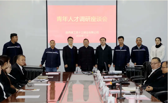 陜建十三建公司領導班子,各部室、各單位負責人,青年人才代表等40余人參加了座談。