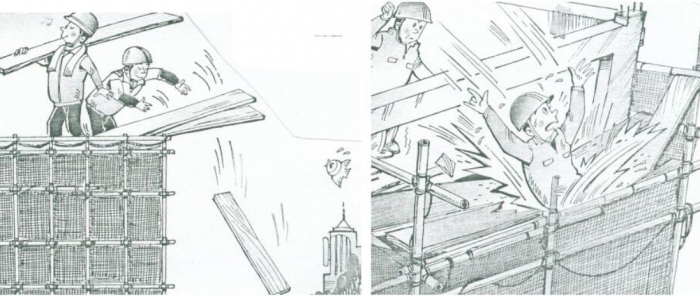 (一)“三寶”防護 安全帽、安全帶、安全網(wǎng)是安全“三寶”。作業(yè)現(xiàn)場人員應(yīng)做到:一是進入作業(yè)現(xiàn)場的職工要戴安全帽;二是高空作業(yè)人員須系安全帶;三是高處作業(yè)點的下方必須設(shè)安全網(wǎng)。