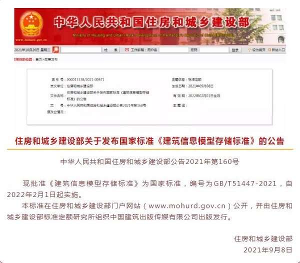 國家標準《建筑信息模型存儲標準》發(fā)布