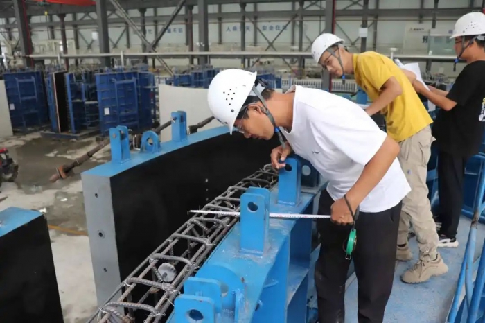 承接任務(wù)后,為確保管片順利澆筑,集團新型建材公司統(tǒng)籌部署,科學(xué)組織,嚴格按照設(shè)計圖紙、技術(shù)生產(chǎn)規(guī)范要求,對現(xiàn)場管理人員、勞務(wù)隊伍進行了詳細的技術(shù)交底,明確了操作規(guī)程;嚴格把控原材進場關(guān),優(yōu)化混凝土配合比,保證管片成品質(zhì)量符合設(shè)計要求;加強協(xié)調(diào)管控,嚴格按照施工操作要求完成了模具安裝、鋼筋綁扎、塌落度檢測、混凝土振搗等工作。