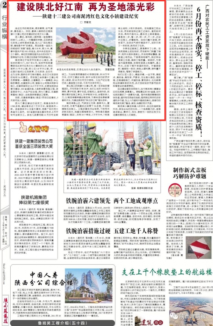 近日,陜建十三建公司負(fù)責(zé)管理的南泥灣紅色文化小鎮(zhèn)項目登上《陜西建筑報》,宣傳分享了南泥灣紅色文化小鎮(zhèn)建設(shè)的施工進(jìn)展情況及十三建公司在建設(shè)中所發(fā)揮的管理作用。