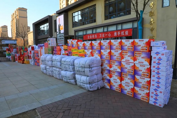 為支援一線防疫工作,陜建十三建集團向延安新投物業(yè)服務(wù)有限公司捐贈了8000只口罩、100件軍大衣,60箱方便面、60箱火腿腸、60箱奶茶和15箱榨菜。