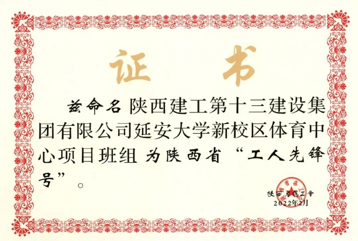近日,陜西省總工會下發(fā)《關(guān)于為“十四運會和殘?zhí)貖W會”作出突出貢獻的集體和個人授予陜西省五一勞動獎和陜西省工人先鋒號的決定》,陜建十三建集團延安大學新校區(qū)體育中心項目班組榮獲陜西省“工人先鋒號”稱號。